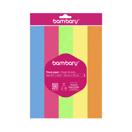 $095Precio unitario /AgotadoNeon Tissue Paper 50 x 70 cm Bag x 5 Unt Multicolor Set
