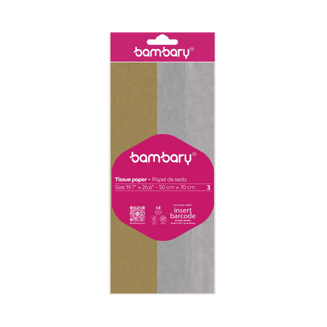 $095Precio unitario /AgotadoMetallic Tissue Paper 50 x 70 cm Bag x 3 Unt Multicolor Set