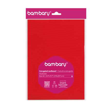 $045Precio unitario /AgotadoCorrugated Cardboard A4 210 x 297 mm Base 161 g Bag x 6 unt Multicolor