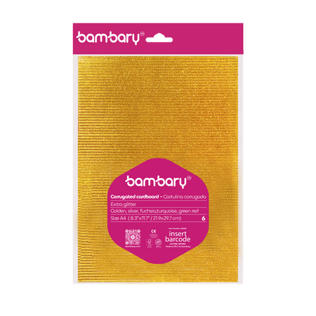 $187Precio unitario /AgotadoExtra Glitter Corrugated Cardboard A4 210 x 297 mm Base 256 g Bag x 6 Unt Multicolor
