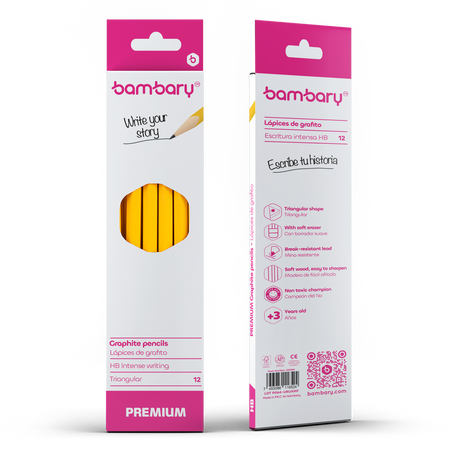 $141Precio unitario /AgotadoTriangular Graphite Pencils 7" X2.20 mm HB Black Wood Strip Bambary Color Bli 4 unt