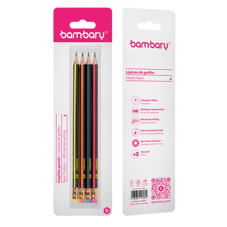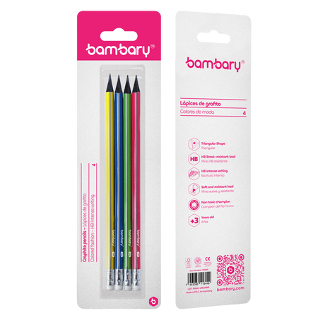 $186Precio unitario /AgotadoTriangular Graphite pencils 7" X2.20 mm HB Strip C/Neon Bli 4 unt