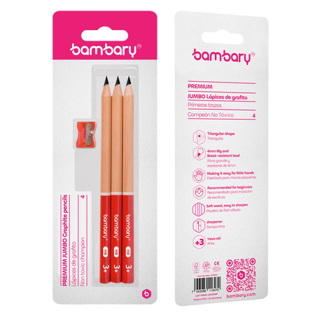 $095Precio unitario /AgotadoTriangular Jumbo Graphite Pencils 7" X 4mm HB With Sharpener Bli 3 unt